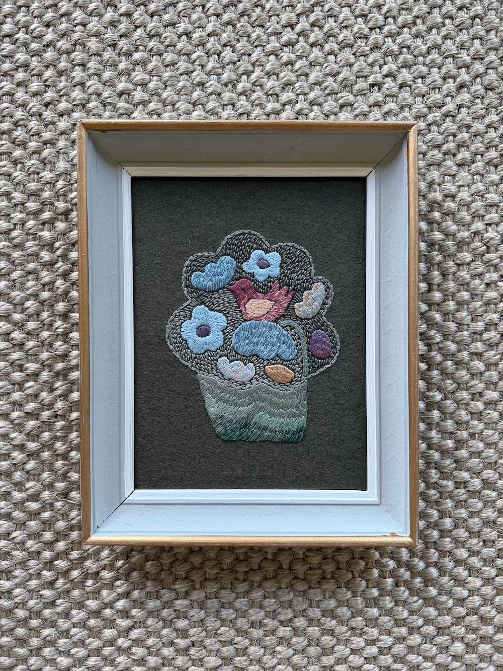 MIKKONEN_XONO22484,10€ MIKKONEN_XONO22 quantity Add to basket Category: Muut Description DescriptionFlowerbush bird Wood-framed hand embroidery on wool 245cm x 305cm