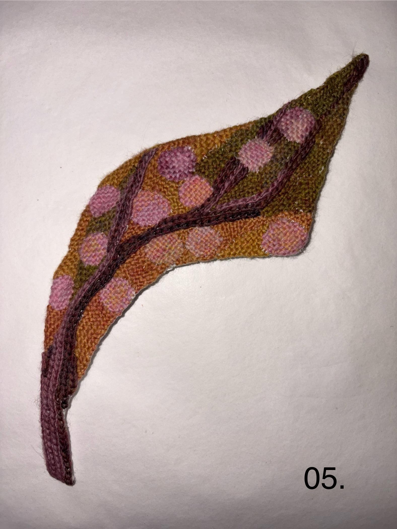 Mosaic embroidery with wool yarn. Ready for wall mounting with magnet.